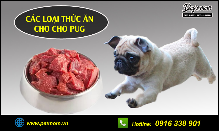 Là động vật ăn thịt nên khẩu phần ăn của chó pug không thể thiếu thịt, cá để bổ sung đạm. Các loại thức ăn tươi tự chế biến là nguồn dưỡng chất vô cùng lớn cung cấp đủ năng lượng để chó pug hoạt động hằng ngày, hơn thế nữa các loại thức ăn này luôn được nấu chín sẽ cực kỳ an toàn cho sức khỏe của chúng.